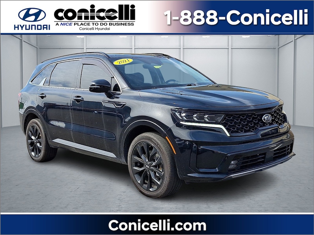 Value priced below the market average! This 2021 Kia Sorento SX, has a great Ebony Black exterior, and a clean Black interior! This model has many valuable options -Synthetic Leather Seats -Navigation -Backup Camera Great family vehicle, with third Row Seating -Sunroof -Panoramic Sunroof -Bluetooth -Satellite Radio -Aux. Audio Input -Heated Front Seats -Heated Mirrors -All Wheel Drive -Auto Climate Control -High Intensity Headlights -Automatic Headlights -Fog Lights -Rear Bucket Seats -Multi-Zone Air Conditioning -Rear Air Conditioning -Remote Start -Security System -Parking Sensors -Parking Assist -Power Locks -Keyless Entry -Power Windows -Power Lift Gate -Steering Wheel Controls -Cruise Control -Leather Steering Wheel Automatic Transmission -Tire Pressure Monitors On top of that, it has many safety features -Brake Assist -Traction Control -Stability Control Call to confirm availability and schedule a no-obligation test drive! We are located at 1208 Ridge Pike, Conshohocken, PA 19428.